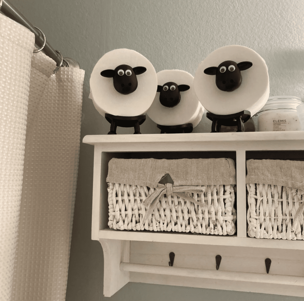 Add a fun toilet roll holder that shows off your personality. Not everything in our bathrooms has to be styled to perfection. Adding a fun touch like this sheep toilet roll holder can be a fun way to add personality to your bathroom.