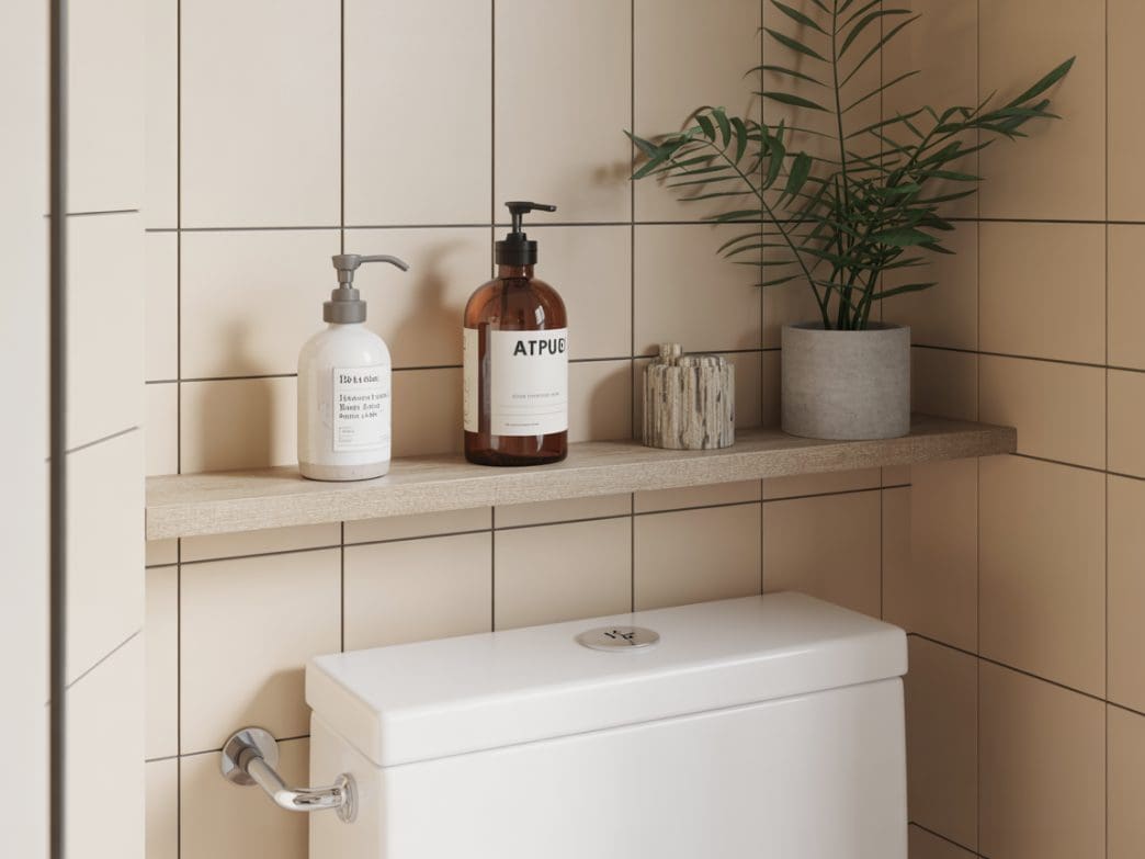 For those needing more storage, a slim over-the-toilet cabinet is a smart investment. We suggest choosing a shallow unit that includes both open shelves and a closed cupboard. This option makes use of space vertically while hiding clutter, fitting perfectly into your overall back of toilet decor plan.