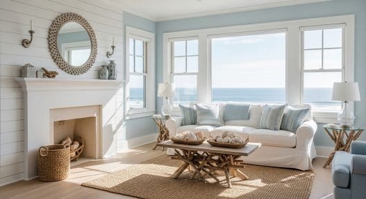 In this guide, we will share 20 practical and achievable ideas to help you design a coastal casual living room. Each idea is beginner-friendly and rooted in design principles that make sense, such as color psychology, balance, and texture. We aim to help you build a space that feels open, airy, and grounded in coastal calm, even if you’re miles from the ocean.