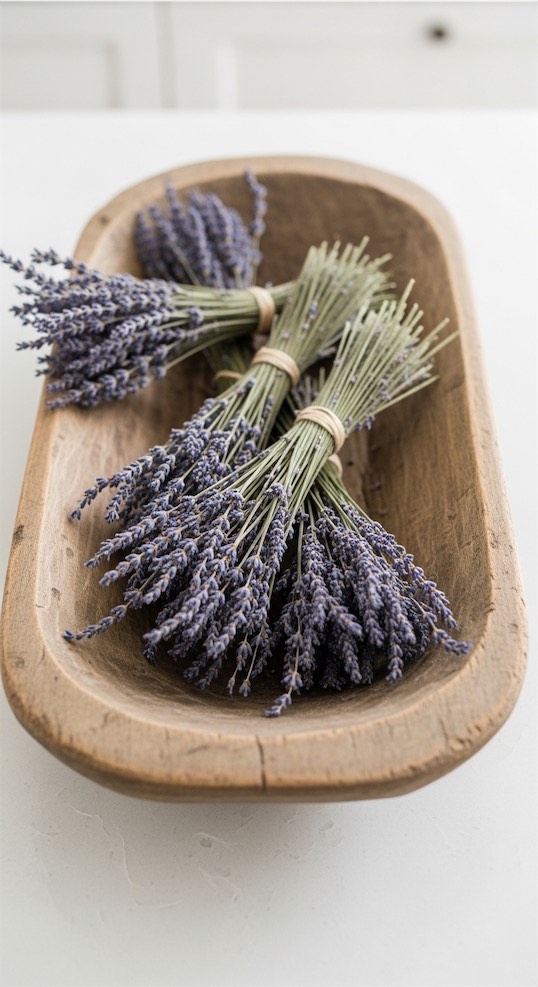 Lay a few tied bundles of dried lavender across the dough bowl for a simple floral arrangement that smells incredible.