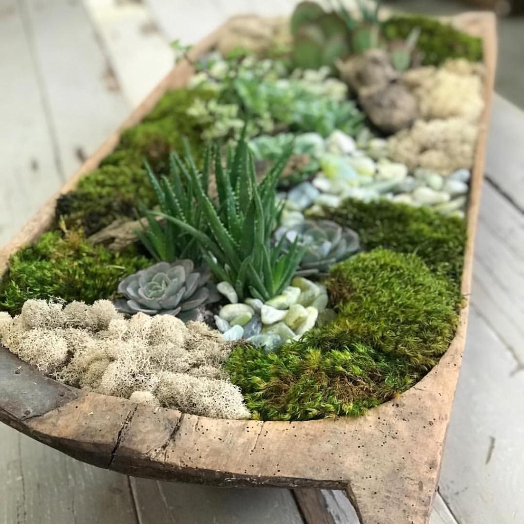 Arrange several small succulents directly inside the dough bowl, either potted or nestled in moss.