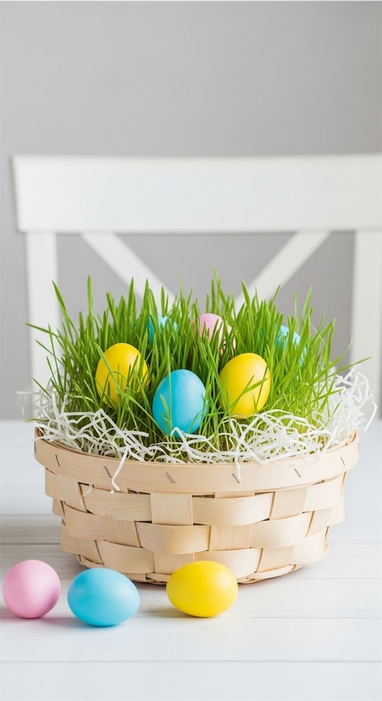 There’s something instantly nostalgic about a basket filled with shredded grass and pastel eggs.
