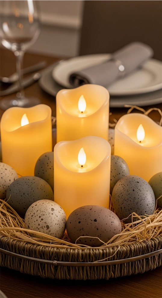 The soft glow balances the playful Easter elements, making the centerpiece feel grown up.