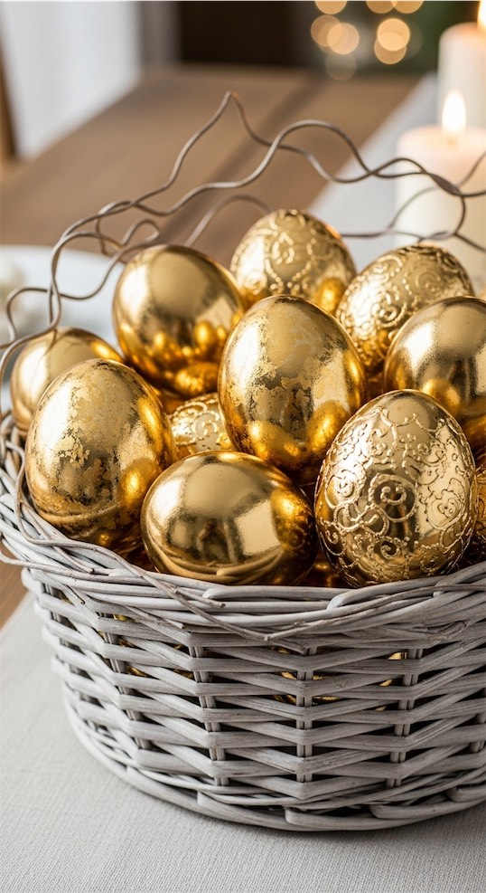 If you want something slightly fancy, metallic eggs are a beautiful upgrade. Gold adds warmth and shine to the table.