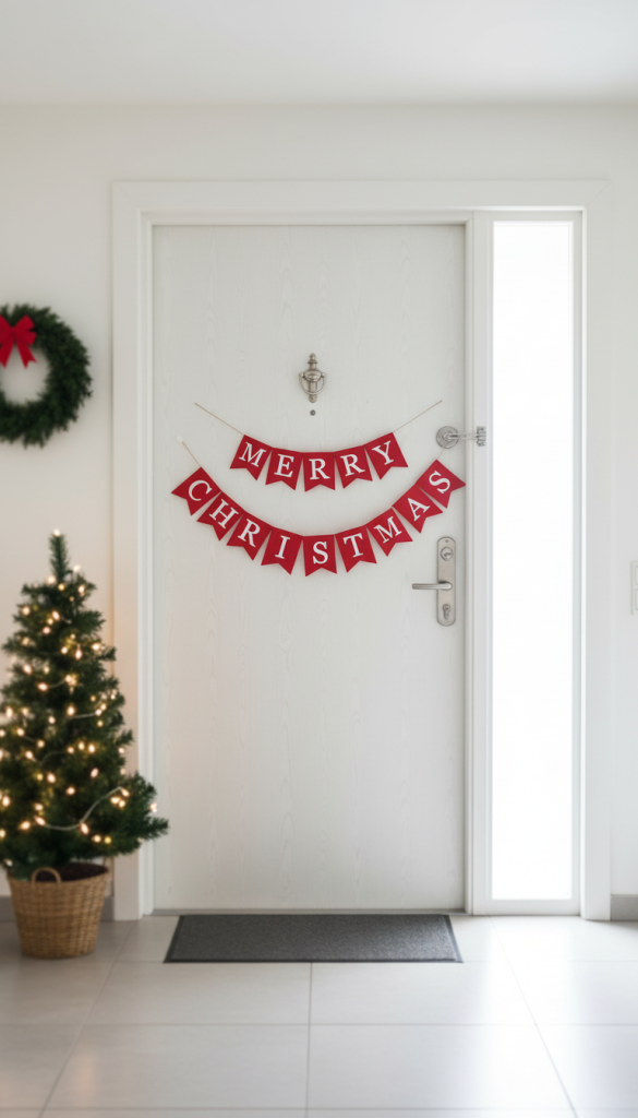 For plain metal or wood doors, adding candy-cane stripes with painter’s tape on the outer frame makes it instantly festive without any damage.