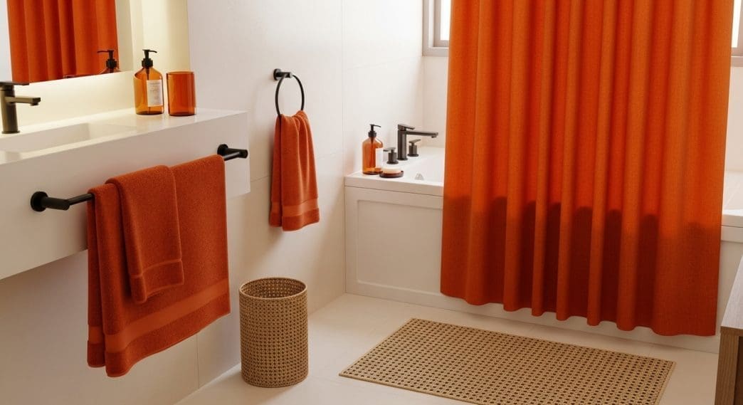 Finally, we advise selecting a cohesive fall color palette and applying it across towels, rugs, accessories, and containers. Using shades like burnt orange, cream, olive green, and cinnamon creates harmony and avoids a cluttered appearance. A unified palette helps all your fall bathroom decor ideas feel connected and well-executed.