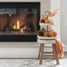 A decorative tray serves as a useful base for grouping smaller fall decor items together. We suggest using a wooden or metal tray in a neutral tone to gather candles, small pumpkins, and decorative orbs. This method prevents the table from looking cluttered and allows you to easily adjust the arrangement when desired. It also helps anchor your fall decor on an entry table display, creating a clean and structured look.