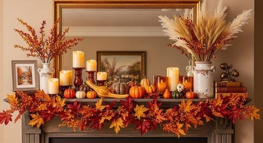 Decorating your fireplace mantle for the fall is like giving your living room a warm, pumpkin-spiced hug. The mantle is a natural showstopper, instantly catching the eye and setting the mood for the whole space. This is your chance to layer rich textures, sprinkle in vibrant autumn colors, and mix cozy accents that will make guests not want to leave! The fun part? Fall fireplace mantle decor styling works for every personality, whether you’re into clean, minimal elegance or full-on “I just returned from the harvest festival” charm. And since it’s all happening above the floor, even the tiniest of living rooms can pull off a jaw-dropping seasonal display. With the right touches, your mantle becomes more than decor, it’s the glowing heart of your home’s fall story.