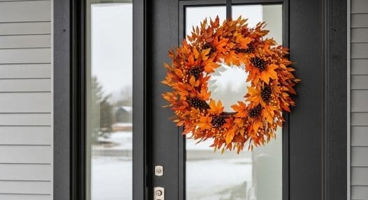 The natural textures make your front door feel welcoming and festive, and it’s a style that never really goes out of fashion. You can even add a few small faux acorns or pinecones to give it extra dimension.