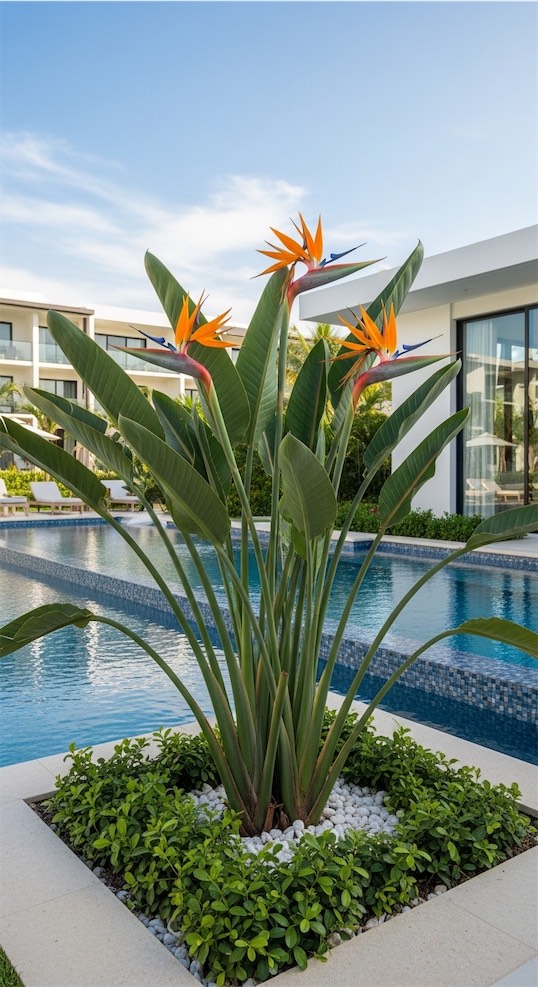 Bird of Paradise is a classic Florida favorite, and planting it in the ground near your pool creates a strong focal point.