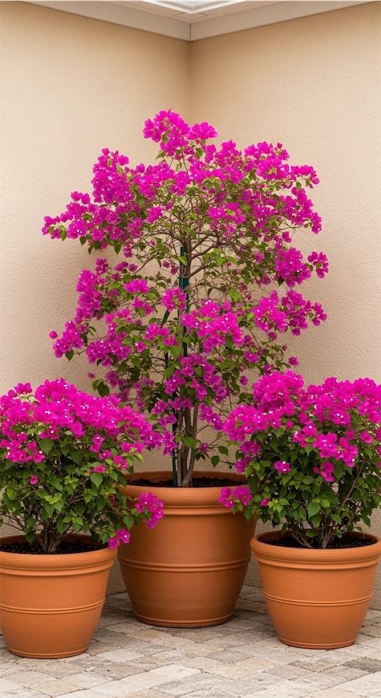 4. Brighten Corners with Bougainvillea in Moveable Pots