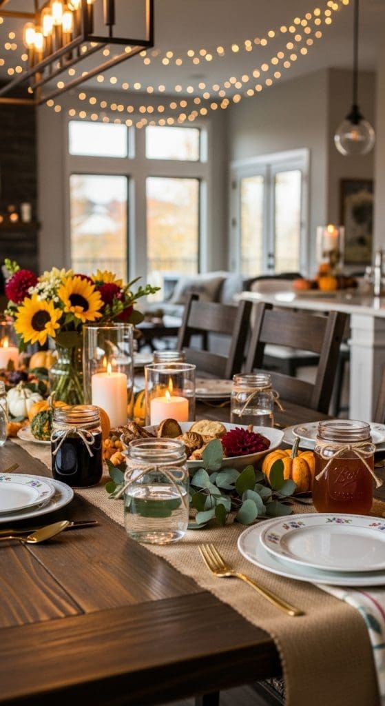 Mason jars work for wine, cider, or water, and they instantly give that cozy farmhouse vibe.