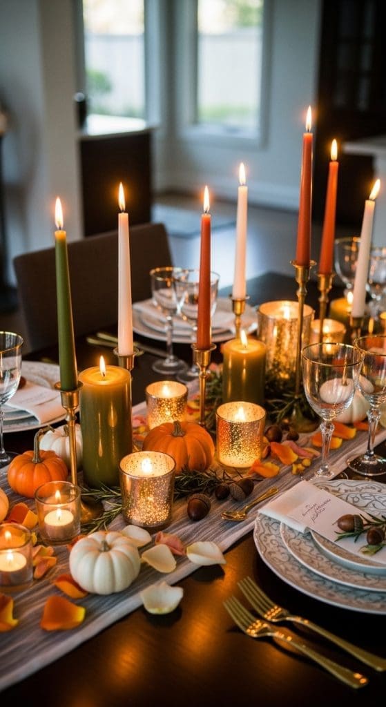 Everyone loves a warm, candlelit Friendsgiving Tablescape.