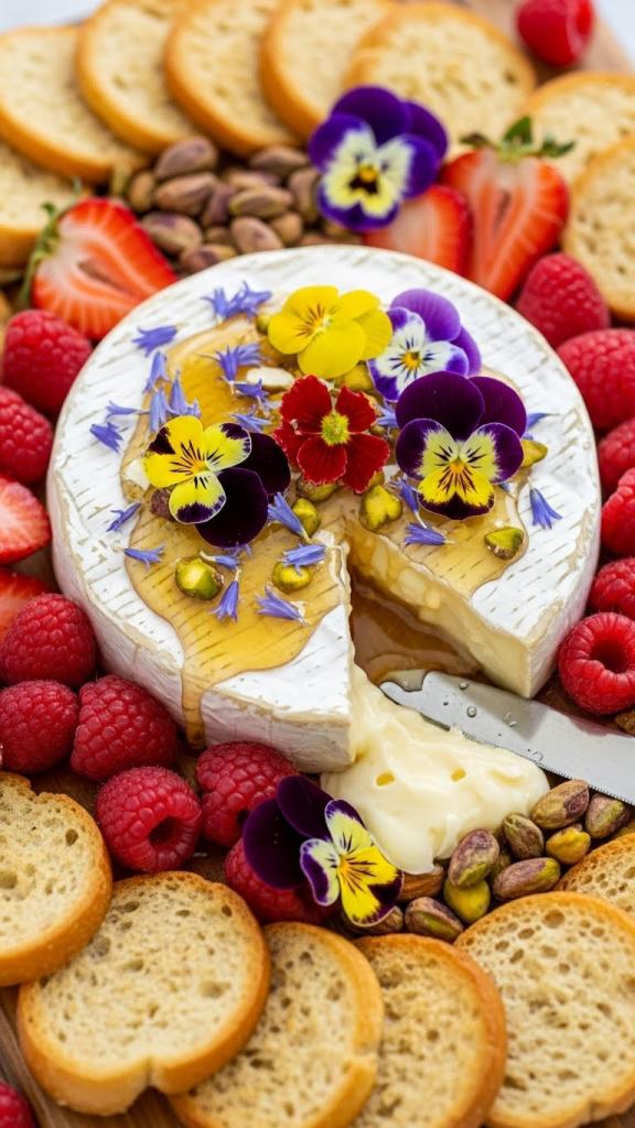 4. Brie with Edible Flowers Galentine’s Charcuterie Board