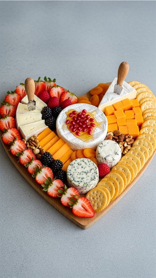 The heart shape gives your board a playful, charming feel even if the ingredients are basic.