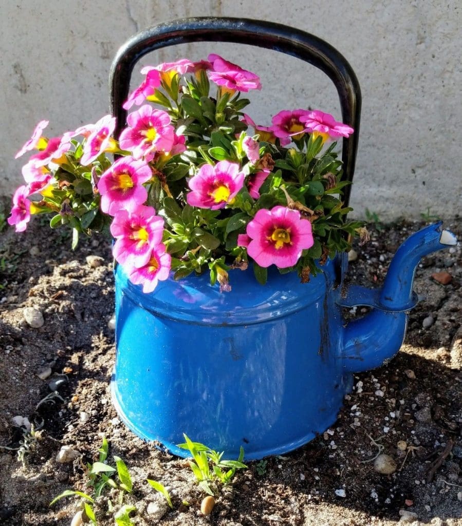 Tip: I tried it once and learned that teapots need good drainage, so fill the bottom with some gravel first!