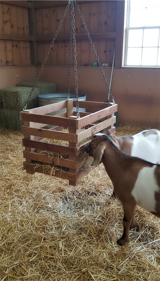 It is a straightforward goat hay feeder DIY solution.
