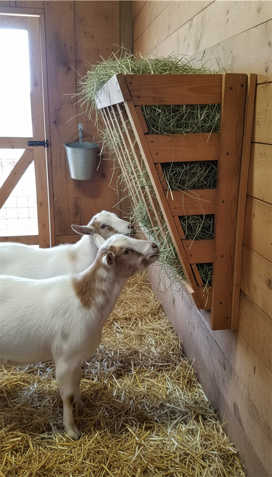 This goat hay feeder DIY style works especially well in barns where wall space is limited.
