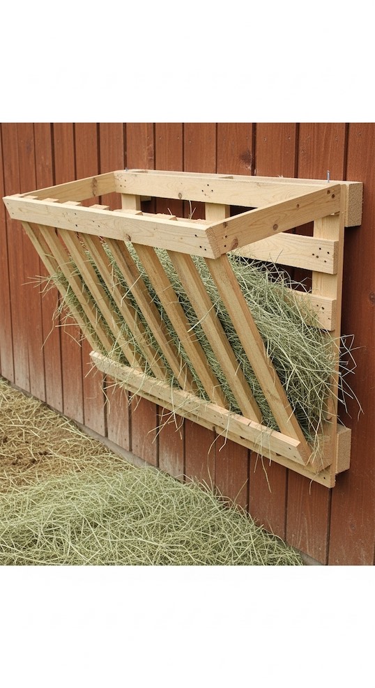 A goat hay feeder DIY hanging design is easy to remove for refilling or cleaning, which many owners appreciate in stalls.