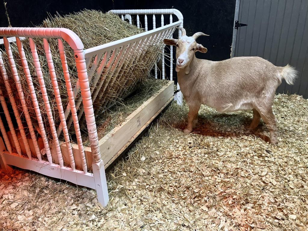 An old wooden baby crib can transform into a spacious hay feeder with evenly spaced slats that already suit goat feeding perfectly.