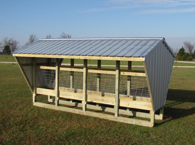 Positioning the roof slightly forward helps water drip away from the feeding face instead of into the hay.