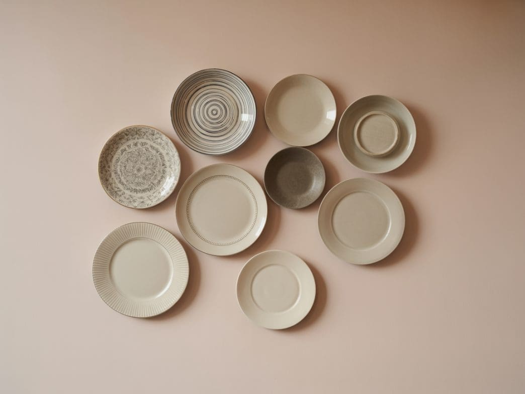 We recommend hanging all-white or neutral-toned plates to create a subtle, textural feature that adds depth without overwhelming the space. This works particularly well in Scandinavian or coastal interiors. The science behind this idea lies in light reflection: white surfaces help bounce light around the room, keeping it bright while still offering dimension.