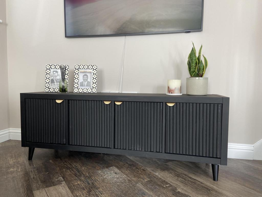 This detail instantly makes the TV stand look more architectural and designer inspired.