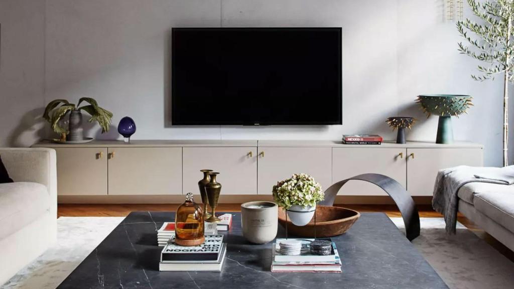 Adding just a few carefully chosen decorative objects, such as a ceramic vase or a stack of books, keeps the TV stand stylish without making the space feel cluttered.