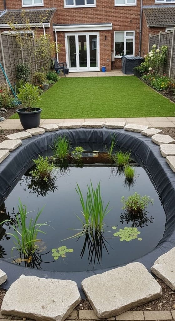 Dig a shallow in-ground pond and edge it with smooth pebbles to blend seamlessly with natural garden elements. This low-profile design is subtle yet effective in small spaces.