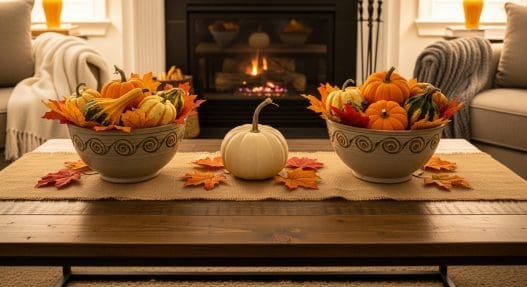 20. Create a Mirror-Image Layout for Symmetrical Rectangle Coffee Table Fall Decor