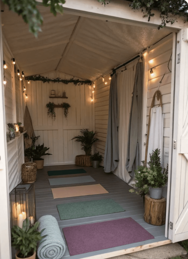 To transform your shed into a wellness retreat, keep things minimal. Use calming paint colors like pale sage or warm beige, roll out a yoga mat, and add soft lighting like Himalayan salt lamps or LED candles. Include a Bluetooth speaker for meditations and a basket for blankets. This space becomes a mental reset button, giving you a place to breathe and unwind.