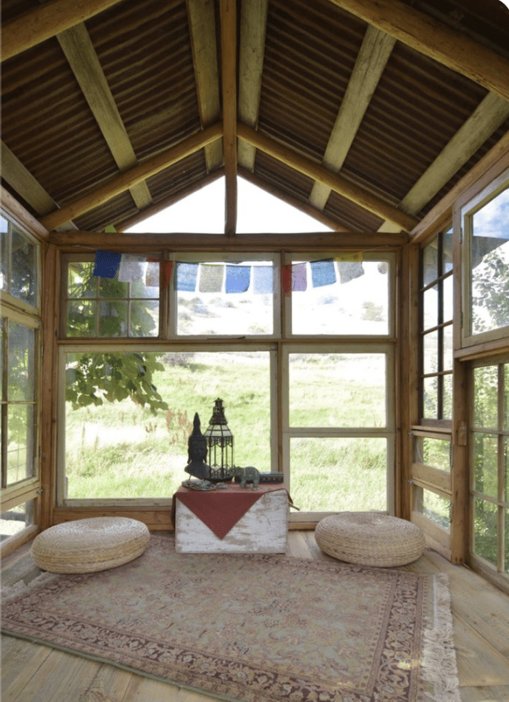 Use clear panels on the roof or upper walls, and bring in heat-loving plants like ferns, monsteras, or orchids. Add plant stands and humidifiers to keep the environment cozy. The tropical plants create a sensory escape, and there’s something calming about being surrounded by greenery. It can become the perfect place for a morning coffee or meditation!