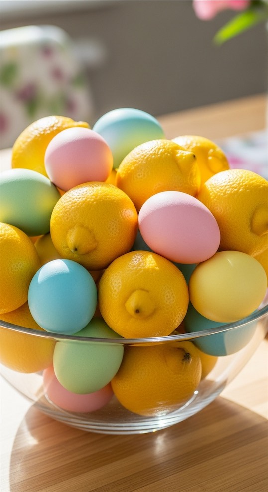 Lemons bring brightness and energy to the table. Mixing them with pastel eggs creates a cheerful, unexpected combo that feels fresh and springy.