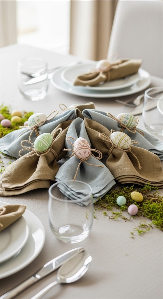 This fits simple Easter centerpiece ideas because it doubles as place setting prep. Everything feels coordinated without extra pieces.