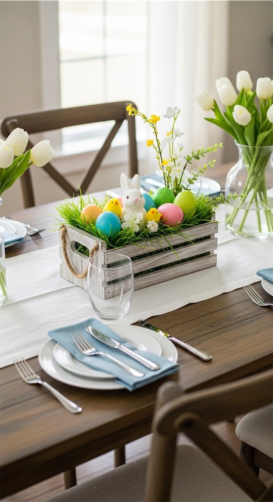 This style fits perfectly with simple Easter centerpiece ideas because everything stays contained and easy to move.