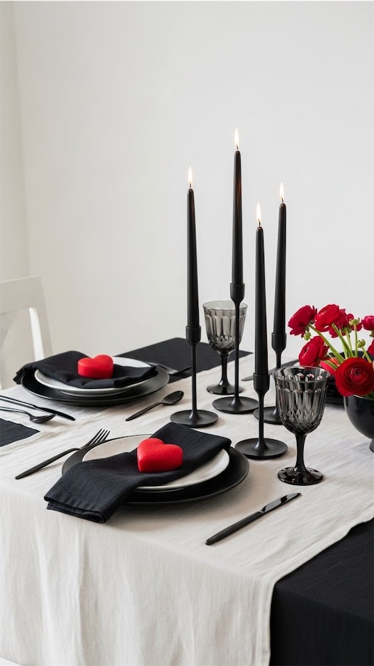 Valentine’s tablescape ideas like this are perfect if you want drama without clutter.