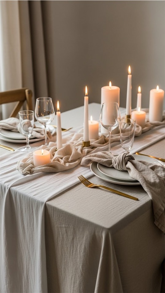Gold accents in candle holders, cutlery, or charger plates add warmth and richness.