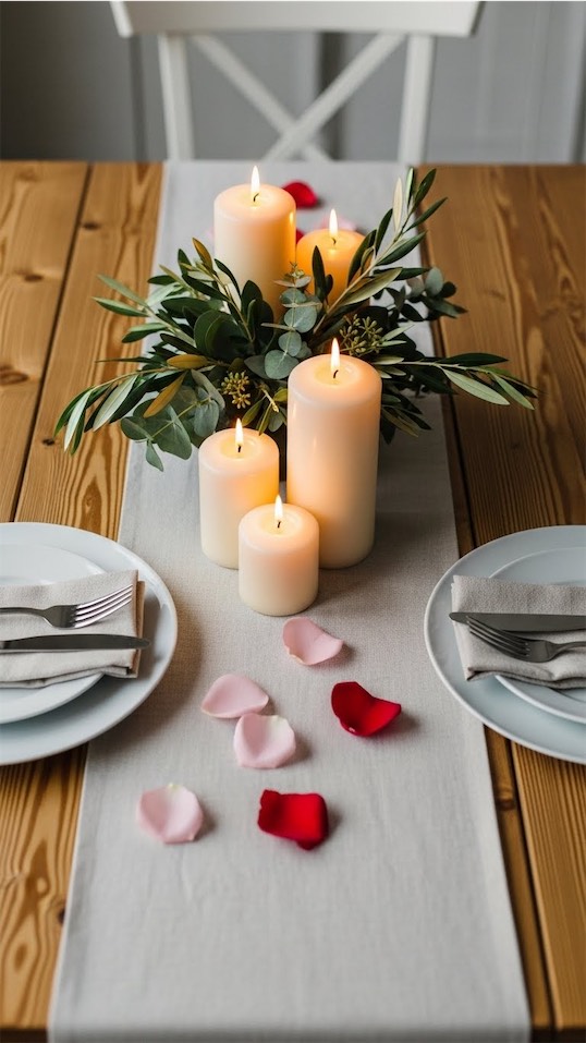 Valentine’s tablescape ideas like this feel intimate and cozy, especially for nighttime dinners.